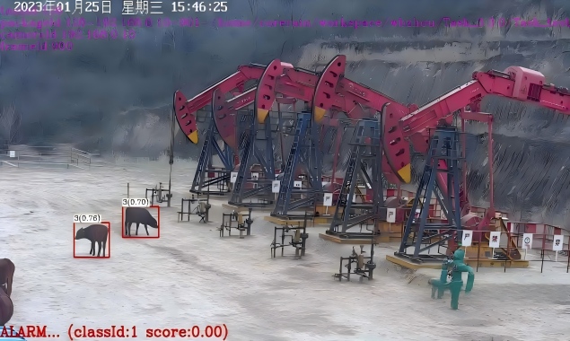 該項目采用邊緣端方案,部署鯤云AI視頻分析平臺,接入了現場的300路視頻,對油田生產過程中原油泄漏及漏油面積計算、安全帽檢測、紅色工作服識別、采油設備運行狀態識別、非法入侵等作業風險及違規行為進行智能識別檢測,有效杜絕安全生產隱患。